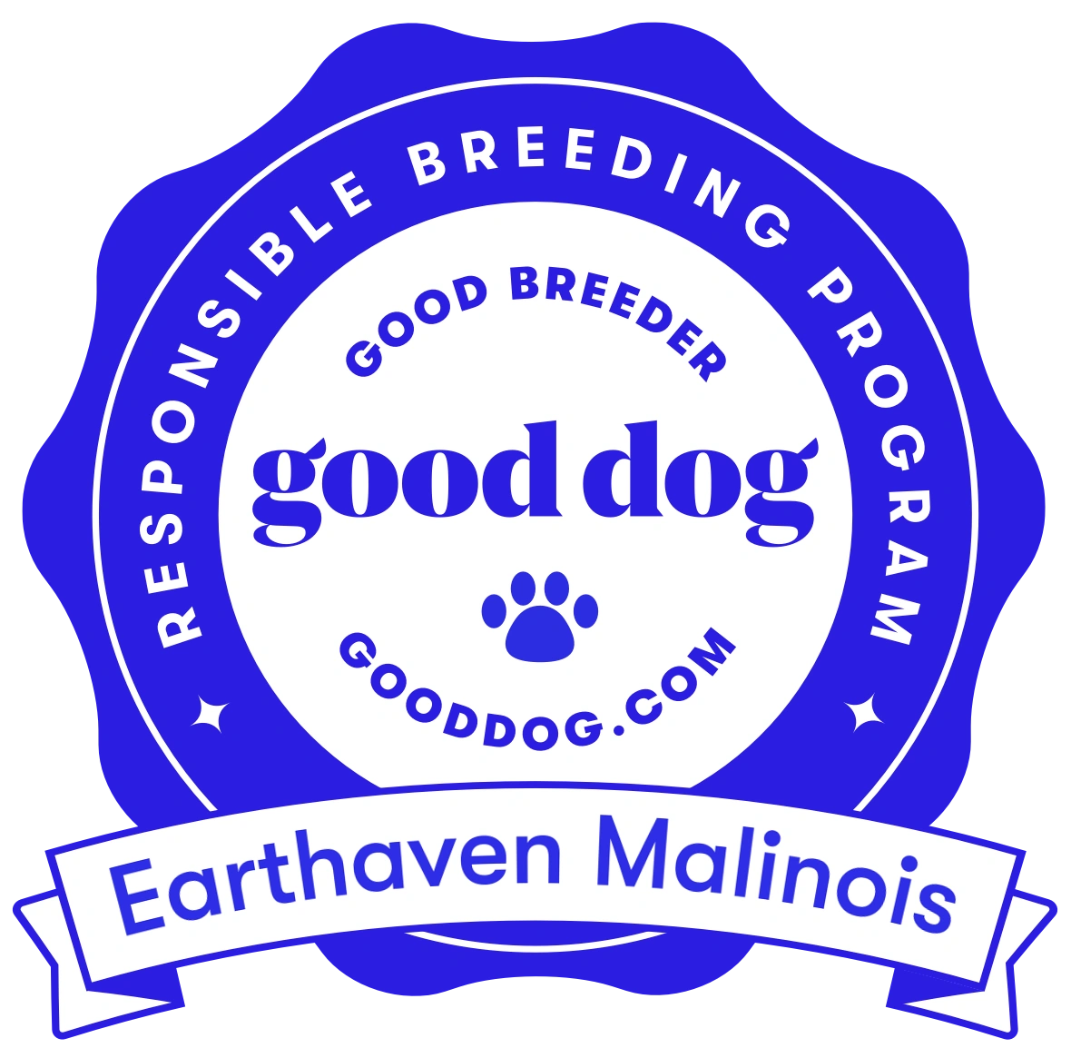 Apply for a puppy. Correspond with the Breeder. Place your Deposit and receive updates all on GoodDog.com! This is an extra layer of protection and service for you, the Buyer--as all Breeders must pass a comprehensive "vetting process" in order to be Qualified as a Good Breeder, like Earthaven Malinois!